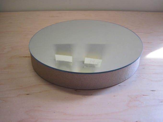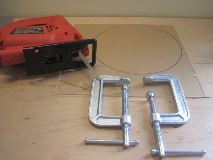 - (Plexiglas) 1/8 "หนา 12" x12 "ของอะลูมิเนียมใส (Plexiglas) มีให้เลือกในAmazon (8 เหรียญ) และMcMaster-Carr ($ 9) อะคริลิคเป็นซุปเปอร์ตัดง่ายถ้าคุณสามารถใช้เครื่องตัดเลเซอร์ได้ I don ' t ดังนั้นฉันจึงลองใช้จิ๊กซอว์ (ขั้นตอนที่ 9) และวิธี score-and-snap (ขั้นตอนที่ 10) ทั้งสองทำงานได้ดีพอสมควร แต่ส่งผลให้ขอบขรุขระบางส่วนและในการเข้าใจถึงปัญหาย้อนหลังจะทำงานได้ดีกว่าสำหรับกระจกสี่เหลี่ยมแทน รอบหนึ่ง. หากคุณต้องการที่จะสร้างกระจกขนาดเล็ก, McMaster ขายตัดก่อน 6" วงกลมขนาดเส้นผ่าศูนย์กลางฉันไม่ได้ซื้อสินค้าจากวงกลมก่อนตัด แต่คุณอาจหาได้